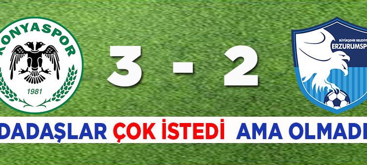 Ev sahibi takim sahadan 3-2 galip ayrildi.Maçtan dakikalar (Ikinci yari)53. dakikada Ömer Ali’nin ceza sahasi disindan kullandigi serbest vurusta top kalecisi Hakan’da kaldi.57. dakikada ceza sahasi disinda sag kanatta taç çizgisine yakin yerden Yatabare’nin sert sutunda havalanan topu kaleci Hakan kornere gönderdi.71. dakikada sag kanattan korner çizgisine yakin noktadan kazanilan serbest vurusta Emrah’in gönderdigi topu önünde bulan Lokman mesin yuvarlagi aglarla bulusturdu. 2-285. dakikada faul sonrasi kazanilan serbest vurusta Ömer Ali’nin ceza sahasina ortasinda Yatabare topa gelisine vurarak, bir kez daha fileleri havalandirdi. 3-2Stat: Konya Büyüksehir BelediyeHakemler: Suat Arslanboga xx, Samet Çavus xx, Yusuf Bozdogan xxAtiker Konyaspor: Serkan xx, Skubic xx, Ali Turan xx, Ugur Demirok xxx, Ferhat xx, Jonsson xxx, Volkan Findikli x (Traore dk. 80 x), Ömer Ali xxx, Fofana xx (Milosevic dk. 71 x), Yatabare xxx, Jahovic xx (Jevtovic dk. 88 ?)Yedekler: Ertugrul, Diagne, Selim Ay, Hadziahmetovic, Vedat, Opanasenko, CanTeknik Direktör: Riza ÇalimbayB.B. Erzurumspor: Hakan xx, Tolga xx, Lokman xxx, Schwechlen xxx, Hakan xx, Scuk xx, Taylan xx, Özer xx (Egemen dk. 84 ?), Erhan xx (Emrah dk. 46 xx), Sunu xx, Lennart xx (Khubulov dk. 70 x)Yedekler: Sehic, Acka, Dos Santos, Ibrahim Akdag, Sefa, OsmanTeknik Direktör: Mehmet AltiparmakGoller: Ugur Demirok (dk. 22), Yatabere (dk. 30 ve 85) (Atiker Konyaspor), Schwechlen (dk. 39), Lokman (dk. 71) (B.B. Erzurumspor)Sari kartlar: Özer, Schwechlen (B.B. Erzurumspor), Ferhat (Atiker Konyaspor)