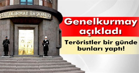 Genelkurmay Baskanligi, son 1 gün içerisinde meydana gelen terör olaylari ile ilgili açiklama yapti.Genelkurmay Baskanligi’nin resmi internet sitesinden yapilan açiklamada, bölücü terör örgütü mensubu bir grup terörist tarafindan Tunceli merkez Çiçekli Jandarma Karakolu’na roketatar ve uzun namlulu silahlar ile saldiri düzenlendigi belirtilerek, “Terörist ateslerine unsurlarimiz tarafindan derhal atesle karsilik verilmesi üzerine terörist atesleri kesilmistir. Silahli saldirida herhangi bir can kaybi ve yaralanma meydana gelmemistir. Olay bölgesine görevlendirilen bir taarruz helikopter koluna teröristler tarafindan keskin nisanci tüfegi ile ates açilmistir. Taarruz helikopter kolu tarafindan ates edilen bölge ates altina alinmistir. Helikopterlerin atesi üzerine terörist atesleri kesilmistir” denildi.JANDARMA KOMUTANLIGI’NA ROKETATAR ILE SALDIRIBölücü terör örgütü mensubu bir grup terörist tarafindan Siirt Kurtalan Ilçe Jandarma Komutanligi’na roketatar ile saldiri düzenlendigi kaydedilen açiklamada, “Terörist ateslerine unsurlarimiz tarafindan derhal atesle karsilik verilmesi üzerine terörist atesleri kesilmistir. Silahli saldirida herhangi bir can kaybi ve yaralanma meydana gelmemistir” ifadesi kullanildi.POSTA TRENINE SALDIRIBölücü terör örgütü mensubu teröristler tarafindan Erzincan Kemah’ta Erzincan-Divrigi posta treninin geçisi esnasinda el yapimi patlayici patlatildigi ifade edilen açiklamada, olayda bir yolcunun hayati tehlikesi olmayacak sekilde yaralandigi, bir vagonun ise raydan çiktigi kaydedildi.POLISIN SEHIT OLDUGU OLAYDA YARALANAN TERÖRIST YAKALANDIMardin Il Jandarma Komutanligi unsurlari tarafindan Mardin Ömerli’de icra edilen arazi aramasinda 8 Agustos 2015 günü Mardin Midyat’ta bir polis memurunun sehit oldugu ve bir polis memurunun da agir yaralandigi silahli saldiri olayinda yaralanan bölücü terör örgütü mensubu bir teröristin yarali olarak yakalandigi belirtildi. Bölücü terör örgütü mensubu teröristler tarafindan Diyarbakir Silvan’da üç sivil vatandasin içerisinde bulundugu otomobilin durdurularak gasp edildigi ifade edildi.TERÖRIST TESLIM OLDUBölücü terör örgütü mensubu bir teröristin Sanliurfa Ceylanpinar’da Kara Kuvvetleri Komutanligi’na bagli 3. Hudut Alay Komutanligi unsurlarina silahsiz ve teçhizatsiz olarak teslim oldugu vurgulandi.HAZIRLADIGI BOMBA ELINDE PATLAYAN TERÖRIST ÖLDÜBölücü terör örgütü mensubu teröristlerin Erzurum Tekman’da bir vatandasin evine hazirlamakta oldugu el yapimi patlayici patlamasi sonucu yaralanan bir teröristi getirerek hastaneye götürmesini istedikleri kaydedilen açiklamada, “Söz konusu yarali terörist, götürüldügü Atatürk Üniversitesi Arastirma Hastanesi’nde ayni gün saat 07.50’de ölmüstür” açiklamasi yapildi.PATLAYICI IMHA EDILDIHakkâri Il Jandarma Komutanligi unsurlari tarafindan Hakkâri Yüksekova-Daglica karayolunda bölücü terör örgütü mensubu teröristler tarafindan konulan bir adet el yapimi patlayici düzenegi tespit edilerek, yerinde imha edildigi bildirildi.ISID ÜYESI 3 KISI YAKALANDIAdana Il Jandarma Komutanligi unsurlarinca Adana Yumurtalik’da ISID terör örgütü mensubu oldugu degerlendirilen yabanci uyruklu üç sahsin yakalandigi ifade edildi.