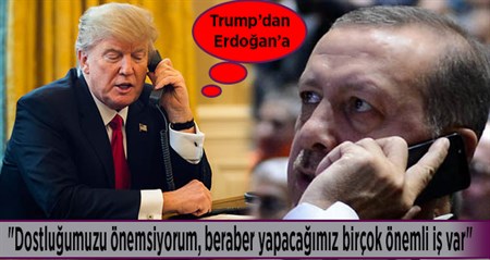 PKK ile mücadelede…ABD Baskani Donald Trump, Cumhurbaskani Recep Tayyip Erdogan’i referandum sonuçlari ile ilgili tebrik ettigi görüsmede, Türkiye’nin dostlugunu önemsedigini, beraber yapilacak çok is oldugunu söyledi.Cumhurbaskanligi kaynaklarindan edilen bilgiye göre; ABD Baskani Donald Trump, Cumhurbaskani Recep Tayyip Erdogan’i 16 Nisan referandumu ile ilgili tebrik ederken, Cumhurbaskani Erdogan’a iyi bir kampanya yürüttügünü ve kampanya sürecini yakindan takip ettigini söyledi.Trump, Erdogan ile yaptigi telefon görüsmesinde, “Dostlugumuzu önemsiyorum, beraber yapacagimiz birçok önemli is var” ifadesini kullanirken, Suriye’de gerçeklestirilen hava saldirilarina Türkiye’nin destegi için de tesekkür etti ve “Rejimin saldirilarina daha fazla sessiz kalamayiz” dedi.Cumhurbaskani Erdogan’in ise Suriye’de konvansiyonel silahlarla çok daha fazla insanin öldürüldügünü hatirlatmasi üzerine Trump, buna katilarak özellikle varil bombalari konusunu dile getirdi. Ayrica Trump’in Suriye, Irak ve PKK ile mücadele konusunda Türkiye ile yakin is birligi içerisinde olacaklarini söyledigi ögrenildi.