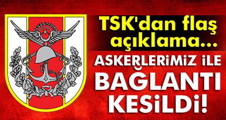 TSK, Firat Kalkani Harekati'na dair flas bir açiklama yapti..Türk Silahli Kuvvetleri (TSK), devam eden Firat Kalkani Harekati kapsaminda 2 TSK mensubu ile irtibatin kesildigini açikladi.ISTE O AÇIKLAMA:Devam eden Firat Kalkani Harekâti kapsaminda, 29 Kasim 2016 Sali günü saat 15.30 sularinda iki silah arkadasimizla irtibat kesilmis olup, bölgede arama faaliyetleri devam etmektedir.