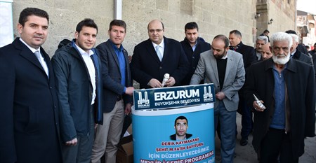 Erzurum Büyüksehir Belediyesi ile Türkiye Gençlik Vakfi (TÜGVA), Mardin’in Derik ilçesinde sehit olan Kaymakam Muhammet Fatih Safitürk için mevlid-i serif okuttu. Ulu Camii’nde gerçeklestirilen mevlid programinda görevi basinda sehit olan Kaymakam Safitürk’ün aziz hatirasi yâd edildi.Mevlid programi sonrasi cami önünde kurulan stantlarda vatandaslara izzet ve ikramda bulunuldu. Erzurum Büyüksehir Belediyesi Baskan Vekili Eyüp Tavlasoglu, Büyüksehir Belediye Meclisi AK Parti Grup Baskan Vekili Mevlüt Dogan ile Aziziye Belediye Baskani Muhammet Cevdet Orhan’in da katildigi mevlid programinda vatandaslar sehidimizin aziz ruhunu saygiyla andi. TÜGVA Erzurum Il Temsilcisi Mustafa Kahveci, programla ilgili yaptigi degerlendirmede, “Türkiye Gençlik Vakfi Erzurum Il Temsilciligi olarak Mardin’in Derik ilçesinde sehit olan Kaymakamimiz Muhammet Fatih Safitürk için Büyüksehir Belediyemizle birlikte mevlid-i serif okuttuk. Baskanimiz Mehmet Sekmen Beyefendiye bize verdigi destekten ötürü çok tesekkür ediyoruz. Geleneklerine bagli kalarak, çagin gereklerini iyi okuyabilen, topluma ve insanliga deger katan, saygi, paylasim ve hassasiyet ilkelerini benimsemis, öz güveni yüksek, yenilikçi, çaliskan, iyi ahlakli, hosgörülü, basarili ve sorumluluk sahibi gençlerden olusan TÜGVA olarak Erzurum’da önemli çalismalara imza atacagiz” dedi.