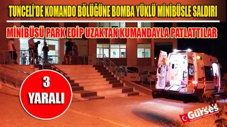 Tunceli’de jandarma komanda bölügüne bombali araçla düzenlenen saldirida 2’si sivil 1’i de asker olmak üzere 3 kisi yaralandi.Tunceli’de jandarma komanda bölügüne bombali araçla düzenlenen saldirida 2’si sivil 1’i de asker olmak üzere 3 kisi yaralandi. Tunceli’nin Pülümür ilçesine 2 kilometre mesafede bulunan Ilçe Jandarma Komutanligi’na bagli Komando Bölügü’ne PKK’li teröristler tarafindan gece saatlerinde bomba yüklü minibüsle saldiri düzenlendi. Düzenlenen saldirida 1 uzman çavusun yani sira civarda oturan 2 sivil vatandas da yaralandi. Saldirinin ardindan PKK’li teröristler tarafindan komando bölügüne de uzun namlulu silahlarla taciz atesinde bulunuldu. MINIBÜSÜ PARK EDIP UZAKTAN KUMANDAYLA PATLATTILAR Edinilen bilgiye göre PKK’li teröristler tarafindan gasp edilen bir minibüs bomba yüklenerek Pülümür Ilçe merkezine 2 kilometre mesafede bulunan jandarma komanda bölügünün bulundugu nizamiye kapisi yakinlarina kadar getirildi. Araci kullanan PKK’li terörist minibüsü park ettikten sonra araçtan atlayarak uzaktan kumandayla araci infilak ettirdi. Meydana gelen patlamada nizamiyede bulunan 1 uzman çavus ile civarda oturan 2 vatandas yaralandi. Patlamanin ardindan PKK’li teröristler komanda bölügüne uzun namlulu silahlarla da saldirida bulundu. Güvenlik güçlerinin karsilik vermesiyle teröristler karanliktan da yararlanarak kaçarken, yaralanan 3 kisi ambulanslarla Pülümür Entegre Hastanesi’nde tedavi altina alindi. Bir sivil vatandas buradaki tedavisinin ardindan Erzincan Arastirma Hastanesi’ne kaldirilirken yeni bir saldiri olasiligina karsi bölük lojmanlarinda oturan siviller de tahliye edildi.