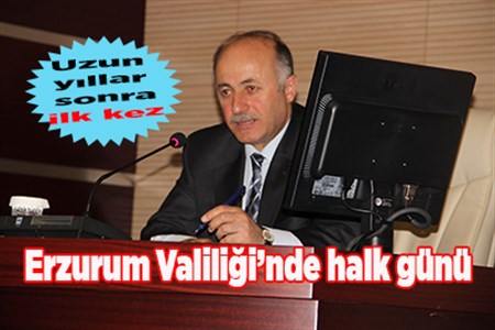 Erzurum Valiligi’nde uzun yillar sonra ilk kez halk günü toplantisi yapildi. Vali Seyfettin Azizoglu, valilik toplanti salonunda gerçeklestirilen toplantida vatandaslarin sorunlarini dinledi.Erzurum Valiligi Toplanti Salonu’nda gerçeklestirilen halk günü programinda Vali Seyfettin Azizoglu’nun yani sira ISKUR Müdürü Ahmet Ötüken, SYDV Il Müdürü Zekeriye Deniz, Il Basin ve Halkla iliskiler Müdürü Ziyaattin Uçan, Il Planlama ve Koordinasyon Müdürü Güven Yavuz da hazir bulundu. Vatandaslarin sorunlarini dinleyen Vali Seyfettin Azizoglu, sorunlari çözümü konusunda beraberindeki kurum amirlerine talimatlar verdi. Halk gününde Vali Azizoglu’na sorunlarini anlatan vatandaslar özellikle is talebi, konut magduriyeti ve bireysel ekonomik sikintilarinin çözümü noktasinda destek istediler.