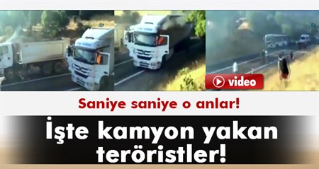 Tunceli’de yol keserek araçlardan indirdikleri insanlara terör örgütü propagandasi yaptiktan sonra 3 kamyonu yakan teröristlerin eylemi cep telefonu tarafindan saniye saniye kaydedildi.