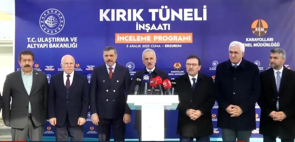 Bölgede 12 önemli karayolu projesinin de yapımına devam ettiklerini söyleyen Bakan Uraloğlu, "Horasan-Karakurt Yolu, Aksukapı Köprülü Kavşağı, Çobandede-Hınıs-Varto, Erzurum-Çat-Karlıova, Erzurum-Tekman Yolları gibi önemli projeleri de tamamladık. Kop Dağı Tüneli Geçişini de kapsayan Trabzon - Aşkale Yolu, Çirişli Tüneli ve Bağlantı Yolları, Erzurum Kuzey Çevre Yolu Üst Yapı Onarımı, Dallıkavak Tüneli, Pasinler Şehir Geçişi BSK. Erzurum'un tüm demiryolu ağını da yeniledik. 2018 yılında Erzurum Palandöken Lojistik merkezini açarak Erzurum sanayi ve ticaret faaliyetlerinin gücüne güç kattık. Erzurum'u hızlı tren ile tanıştıracak 379 km uzunluğundaki Erzincan - Erzurum - Kars hızlı tren hattı etüt proje çalışmalarımız da devam ediyor. Proje çalışmalarını 2026 yılında tamamlamayı hedefliyoruz. 2005 yılında Erzurum'a yaklaşık 2 milyon yolcu kapasiteli modern bir havalimanı inşa ettik. 2002 yılında 105 bin olan yolcu sayısı, 2024 yılında 1 milyon 180 bine çıktı. Erzurumlu vatandaşlarımızın özellikle kış şartlarında havalimanına inemeyen uçaklar nedeniyle yıllarca yaşadıkları mağduriyeti de ortadan kaldırdık. En yoğun sisli havalarda dahi uçakların iniş yapabilmesini sağlayan özel aydınlatma sistemi CAT-3 sistemini kazandırdık. Ben bu örnekleri arttırabilirim. Kimsenin şüphesi olmasın ki Erzurum'a hizmet aşkımız asla bitmeyecek ve Erzurum'u geleceğe taşıyacak proje ve yatırımlarımız hız kesmeden devam edecektir. Bu düşüncelerle Kırık Tünelimizin yapım çalışmalarını yürüten ve projeyi bu aşamaya getiren işçisinden mühendisine tüm yüklenici firma ve Karayolları Genel Müdürlüğü çalışanlarına teşekkür ediyor, başarılarının devamını temenni ediyorum" diye konuştu.